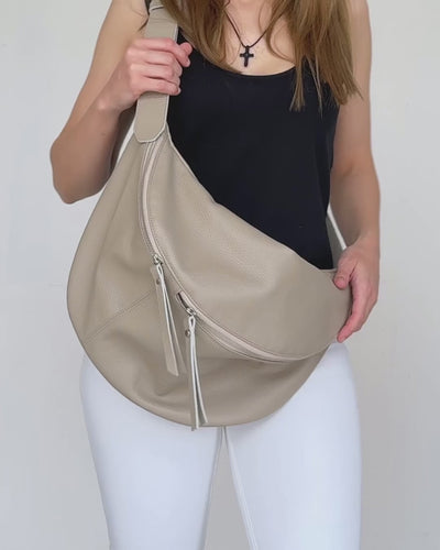 Große beige Leder-Umhängetasche – Übergroße Gürteltasche