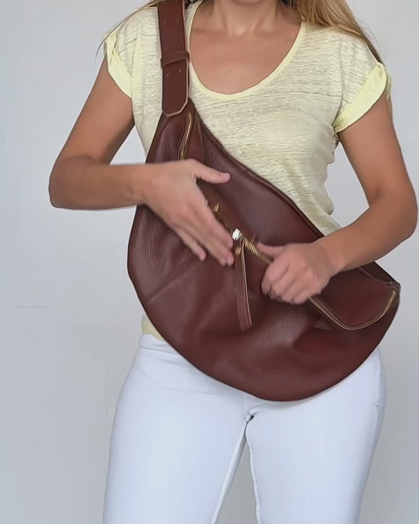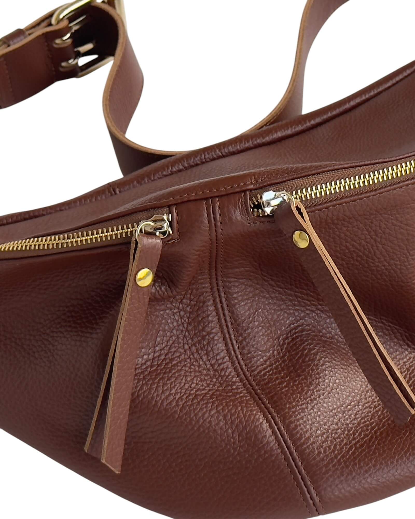 Große braune Leder-Umhängetasche – Übergroße Gürteltasche