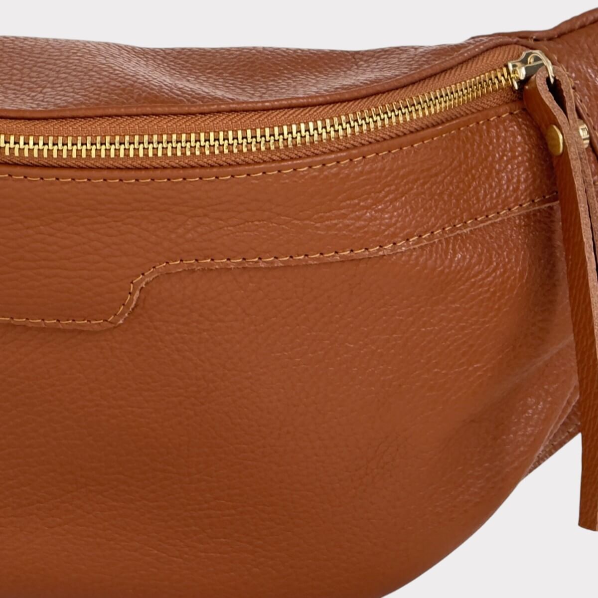 Sac bandoulière en cuir beige moyen - Sac banane souple