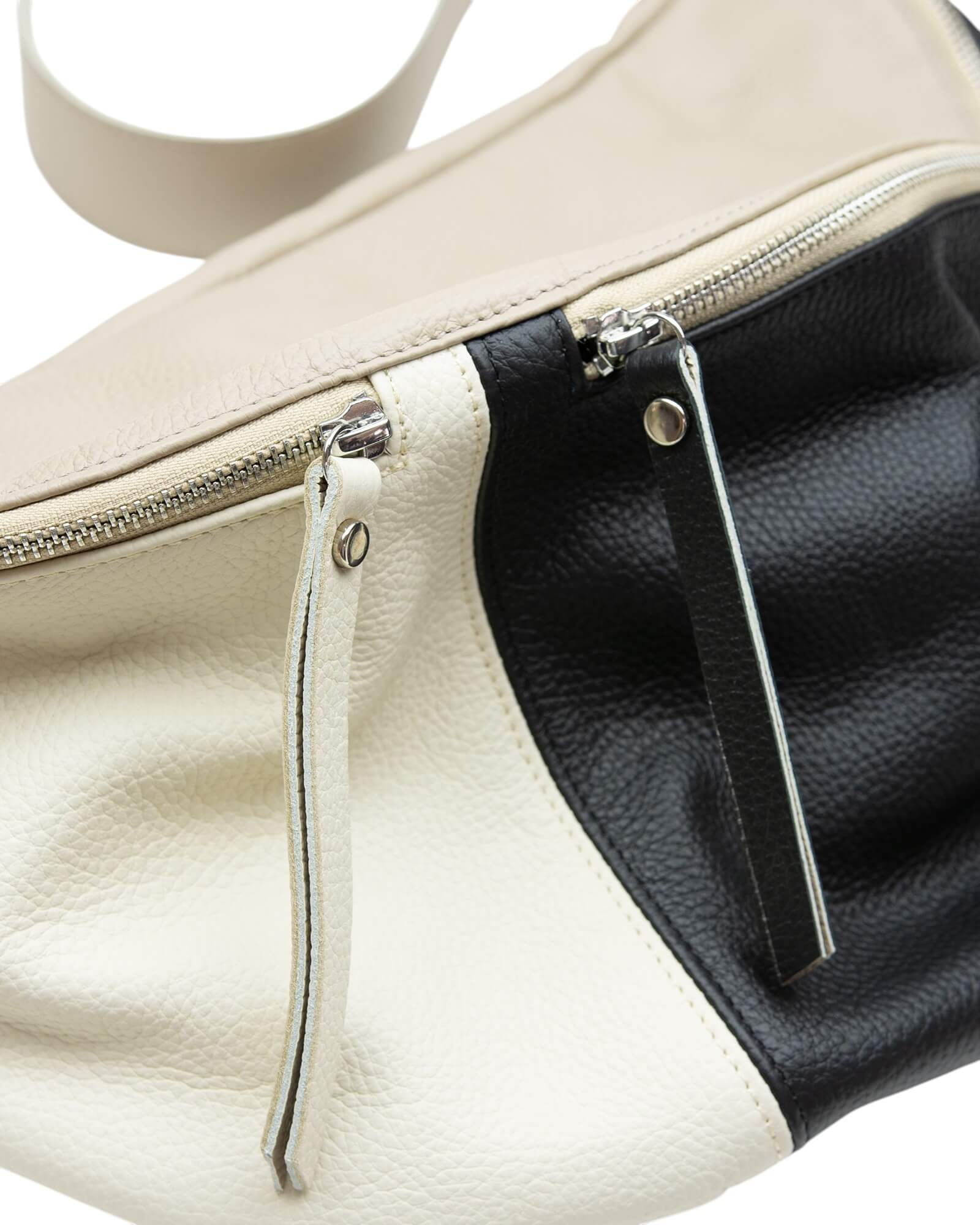 Large Black and White Leather Sling Bag - Oversized Fanny Pack