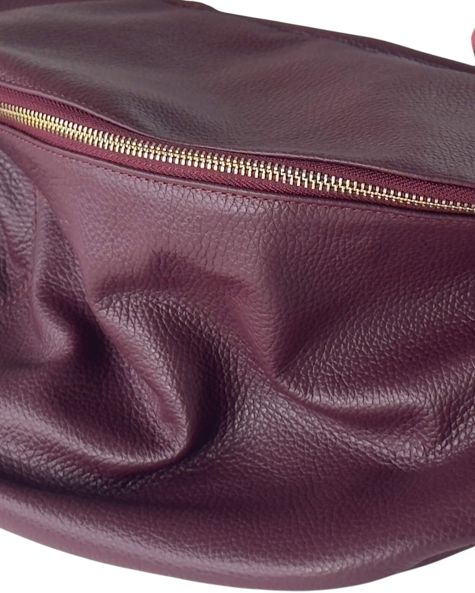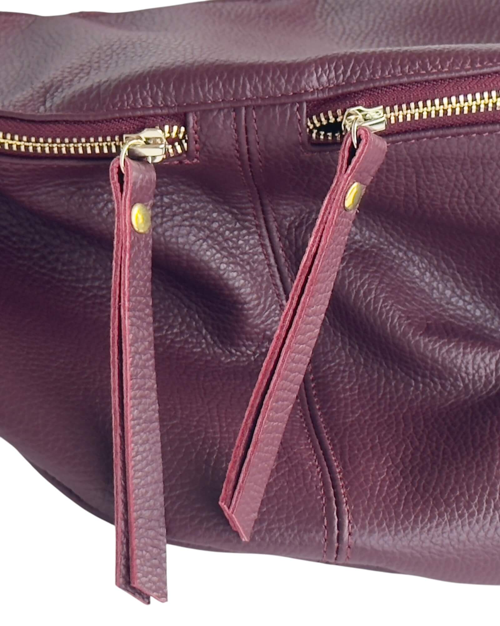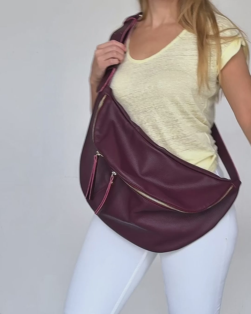 Large Burgundy Leather Sling Bag - Oversized Fanny Pack