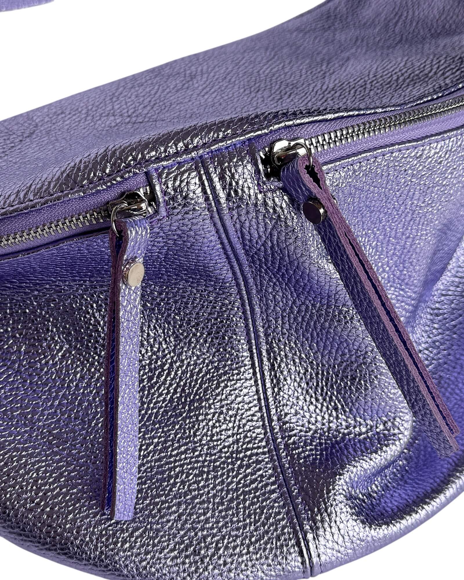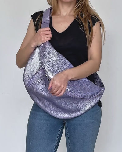 Large Metallic Lilac Leather Sling Bag - Oversized Fanny Pack