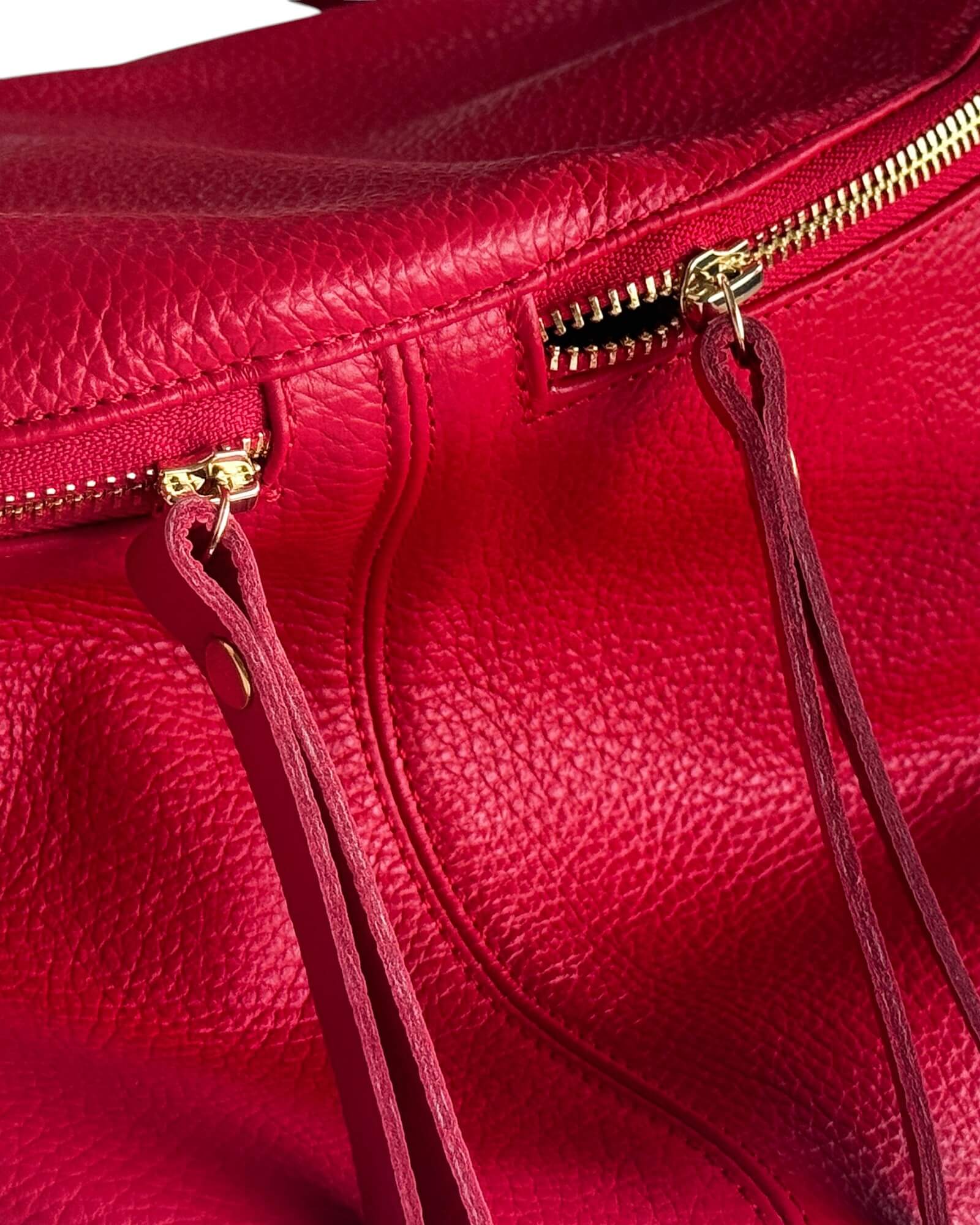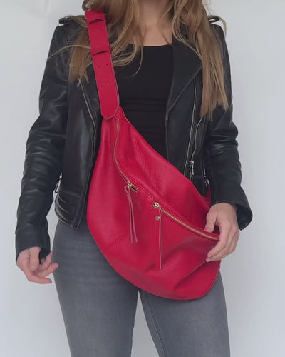 Large Red Leather Sling Bag - Oversized Fanny Pack