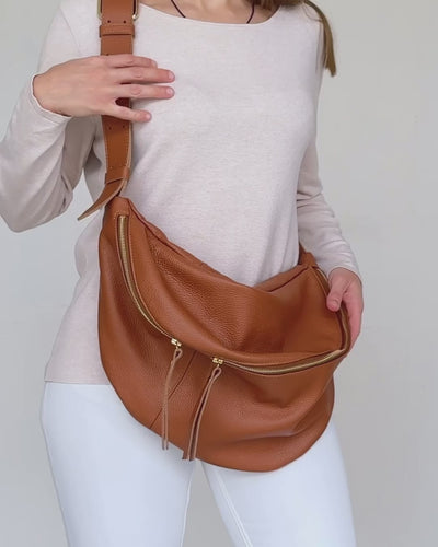 Large Tan Leather Sling Bag - Oversized Fanny Pack