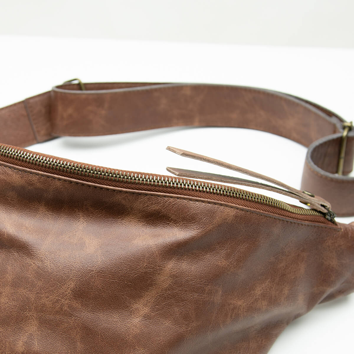 Medium Brown Distressed Leather Sling Bag - Unisex Fanny Pack