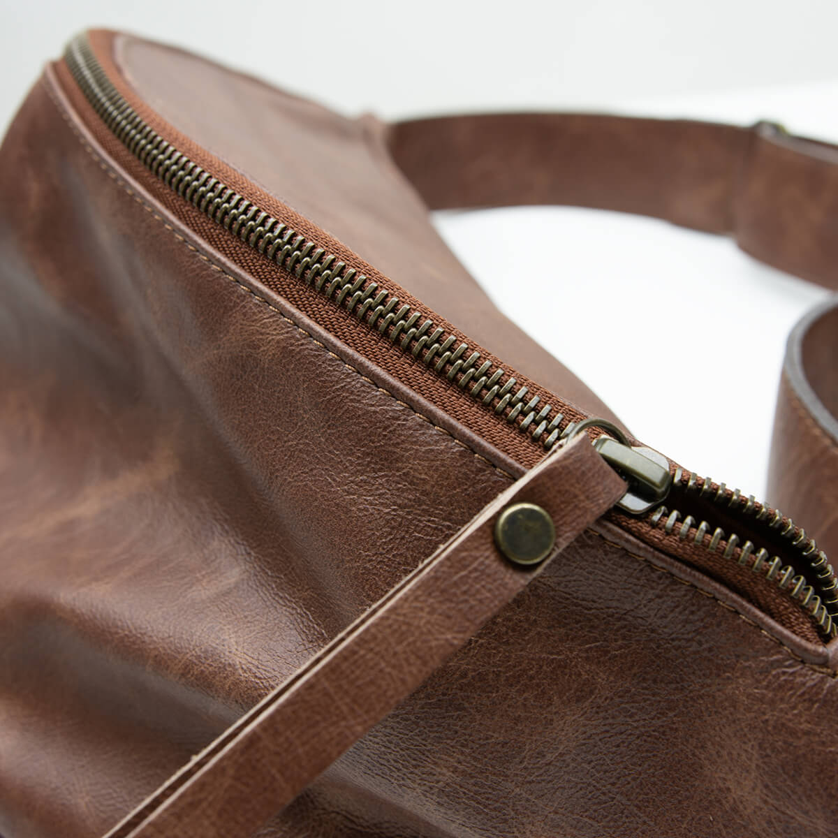 This is full-grain distressed leather—naturally textured, with subtle variations that make each piece unique.Its slightly weathered finish gives every bag a soulful, lived-in feel that only gets better with age.