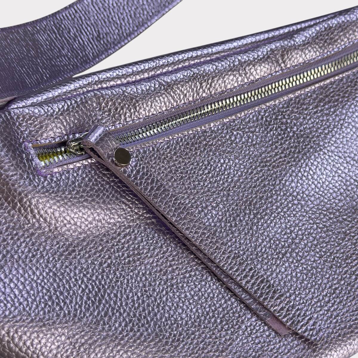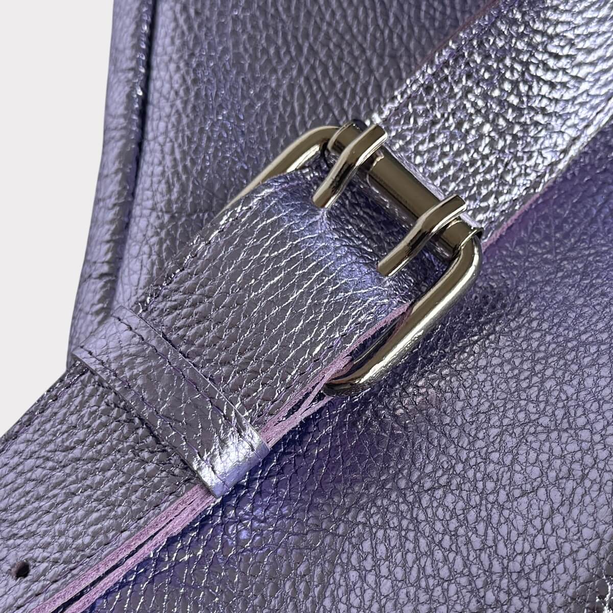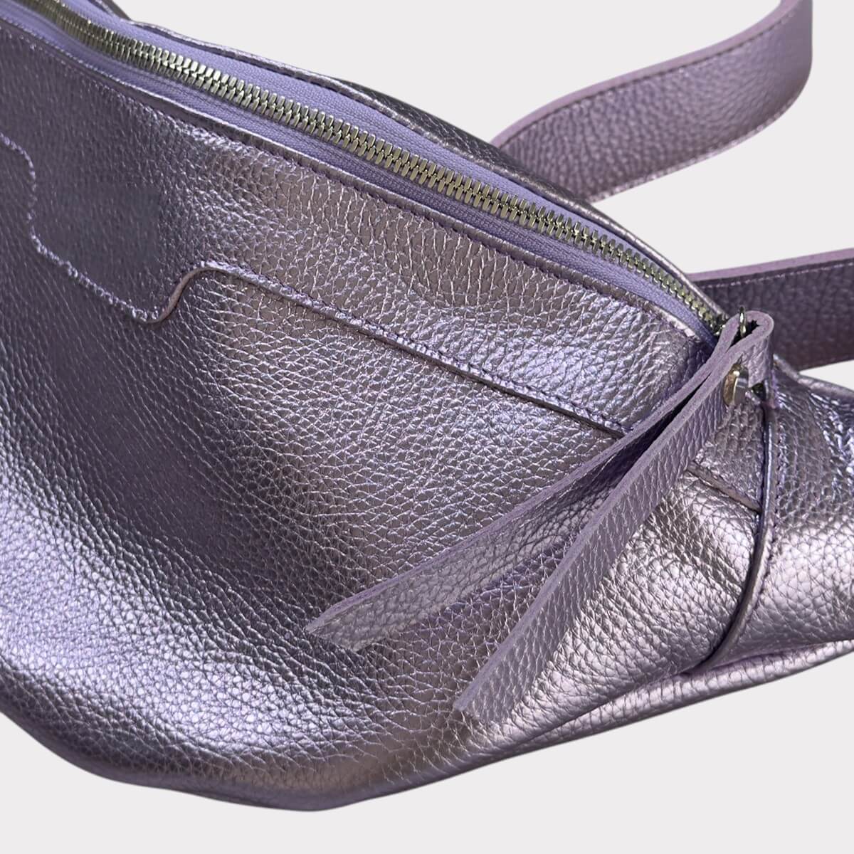 Metallic Lilac Leather Sling Bag - Soft Crossbody Fanny Pack